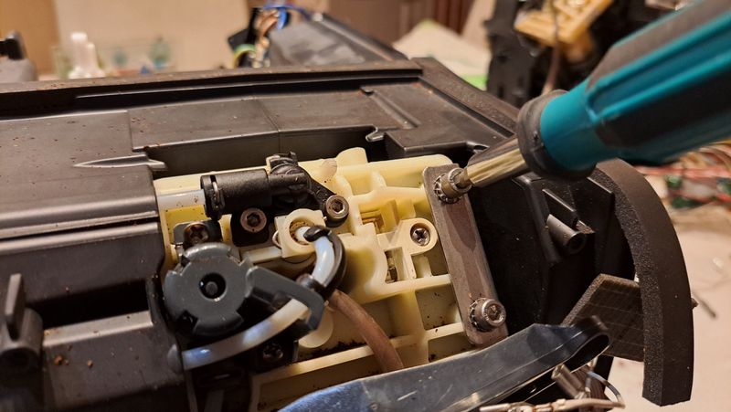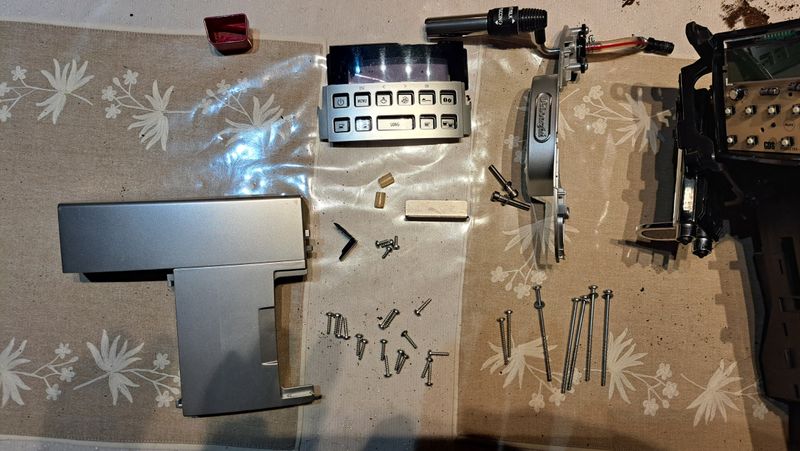 Démonter entièrement la partie droite de la Delonghi (long et très délicat). Ne pas oublier les vis sous la carte électronique...