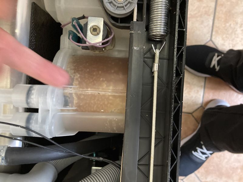 Par contre je vais mettre une photo du bac juste après le sel, je le trouve bizarre, est ce que c'est normal cette matière orange ou cela peut il être des résidus qui bouchent l'arrivée d'eau.