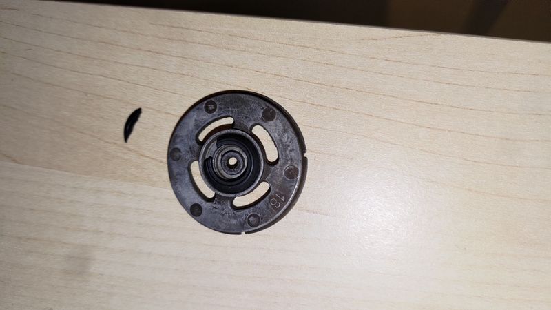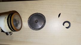 Le piston a été déposé et la coupelle reliée à l'entretoise/au vérin par une vis également. C'est alors que j'ai trouvé dans la "chambre", un bout de joint qui semble être directement lié à la coupelle.