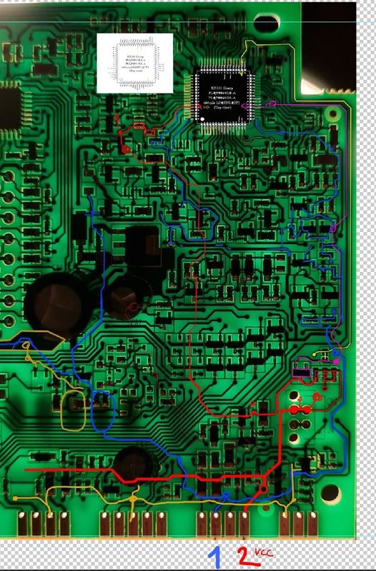 Une des PIN (pin2) montre une ligne passant par 3 résistances pour un total de 5,6ohm jusqu’a la PIN40 du MCU qui d’après la datasheet me dis que ça correspond a VSS. L’autre partie(pin1) j’imagine le signal donc passe par tellement de transistor ou autre semi-conducteur que c’est impossible a re-tracer sans erreur.