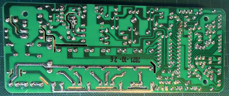 Vraisemblablement panne sur carte mère d'alimentation, mais aucun composant ne paraît avoir fumé (voir photos). Je suis en capacité de souder/dessouder des composants et de tester ceux-ci avec un multi-mètre.