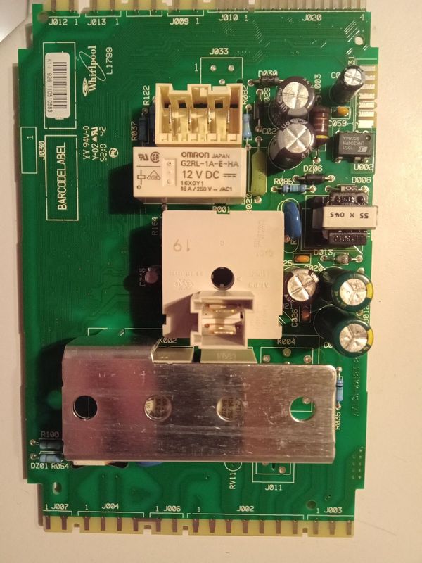 Le lave linge s'est arrêté tout seul en cours de programme puis plus rien, pas moyen de l'allumer voyants éteints. j'ai ouvert le capot et vérifié l'arrivée de courant à la carte principale c'est bon. J'ai vu ici que le soucis semble récurent sur ces cartes alors je l'ai sortie pour voir et en apparence je vois rien de grillé sauf peut-être légèrement noirci près de la R20...