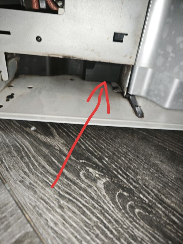 Fuite d'eau claire vers le milieu sous la machine. Sur les photos je présente l'endroit mouillé mais impossible de voir où sa fuite avec un endoscope. La plupart des joints ont été changés et j'ai deja supprimer d'autre fuite.