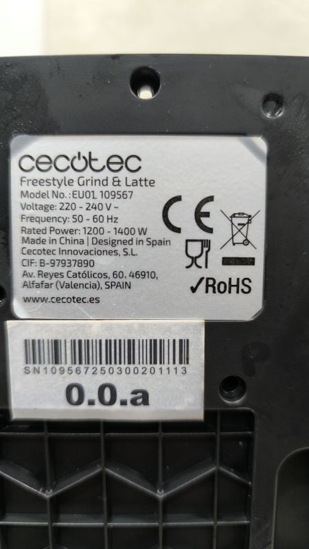 Merci de me transmettre manuel technique machine a café CECOTEC Freestyle Grind & Latte modèle EU01_109567.