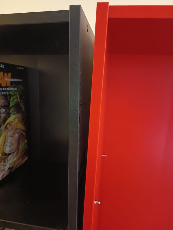Réparation d'une bibliothèque rouge de chez Ikéa