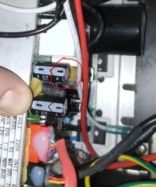 En zoomant, le dessus du condensateur entouré à l'air bombé. Si c'est le cas, il est à changer. Vérifier tous les autres pour voir si leur dessus est bombé ou non.